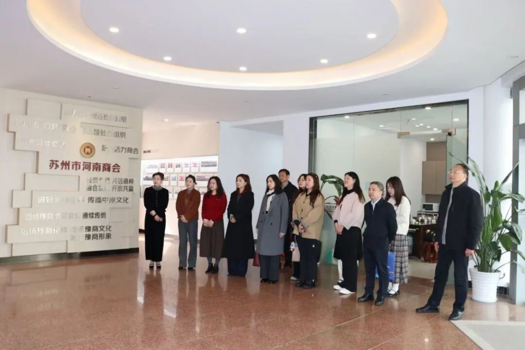会议伊始,苏州市河南商会秘书长段玉花带领参观河南商会文化展厅,通过图文展示、实物陈列等形式,全面了解苏州市河南商会的发展历程、组织架构与特色成果,为后续跨商会协作奠定文化基础。
